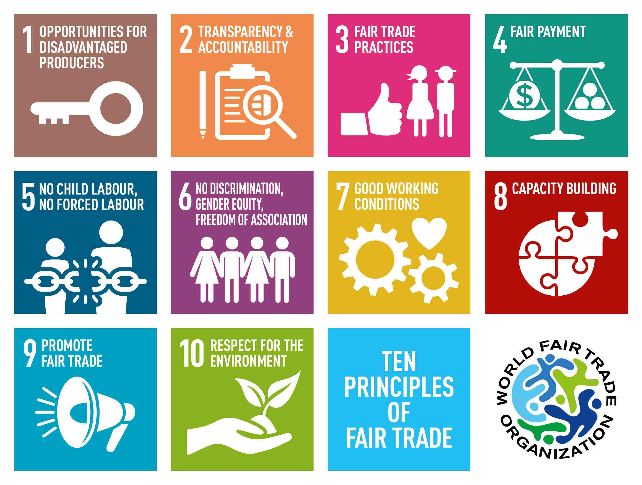 The principles of Fair Trade are simple enough. At its core is the idea that producers, even in the poorest of circumstances, and consumers, even in the richest, can meet each other’s needs through trade and that markets can be reshaped around that act of co-operation. This is embodied in several ways across the Fair Trade movement, and the World Fair Trade Organization label is about the enterprises who produce what we buy – verifying that they and their supply chain is fully committed to Fair Trade.